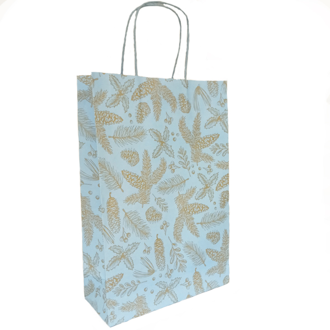 Подарочный пакет "Золотая хвоя на голубом фоне" 240х350х100