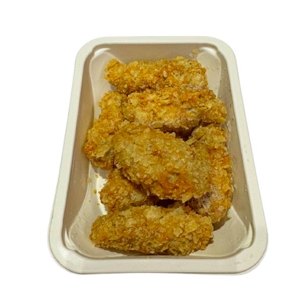 Состав: крыло цыпленка бройлера, чипсы картофельные (картофель, подсолнечное масло, оливковое масло, розовая гималайская соль), молоко пастеризованное 3,2% (молоко нормализованное), яйцо куриное, мука пшеничная хлебопекарная высшего сорта, масло растительное (подсолнечное), соль поваренная пищевая йодированная (содержит йодат калия, агент антислеживающий Е536), чеснок сушеный, перец черный молотый.