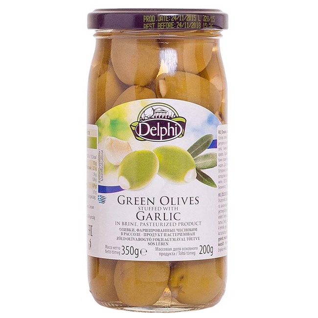 Зеленая оливка, фаршированная целым зубчиком чеснока имеет горький и сладкий вкус одновременно благодаря комбинации двух сильных составляющих. Идеально подходит для тех, кто любит вкус чеснока.
