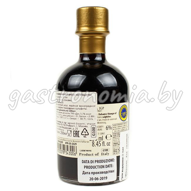 Leonardi - это изысканные бальзамические соусы и уксусы из Италии. Семья Леонарди несколько поколений создает настоящий бальзамик. Производство находится в итальянской провинции Модена. С 2000 года имеет статус  DOP (защищенное обозначение происхождения). Идеально подходит для салатов, свежих и отварных овощей, мяса на гриле, рыбы, маринадов, винегретов, соусов.
