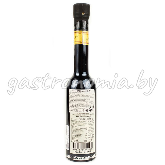 Состав: Варёное виноградное сусло, лимонный сок, бальзамический уксус из Модены (винный уксус, варёное виноградное сусло).