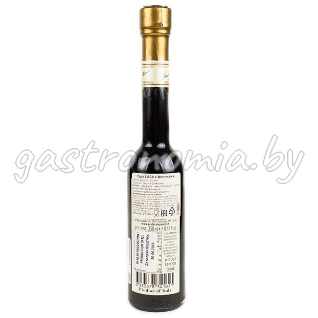 Соус САБА "Leonardi" с финиками, в стеклянной бутылке, объём 250 мл. Leonardi - это изысканные бальзамические соусы и уксусы из Италии. Семья Леонарди несколько поколений создает настоящий бальзамик. Производство находится в итальянской провинции Модена. С 2000 года имеет статус DOP (защищенное обозначение происхождения). Идеально подходит для салатов, свежих и отварных овощей, мяса на гриле, рыбы, маринадов, винегретов, соусов.
