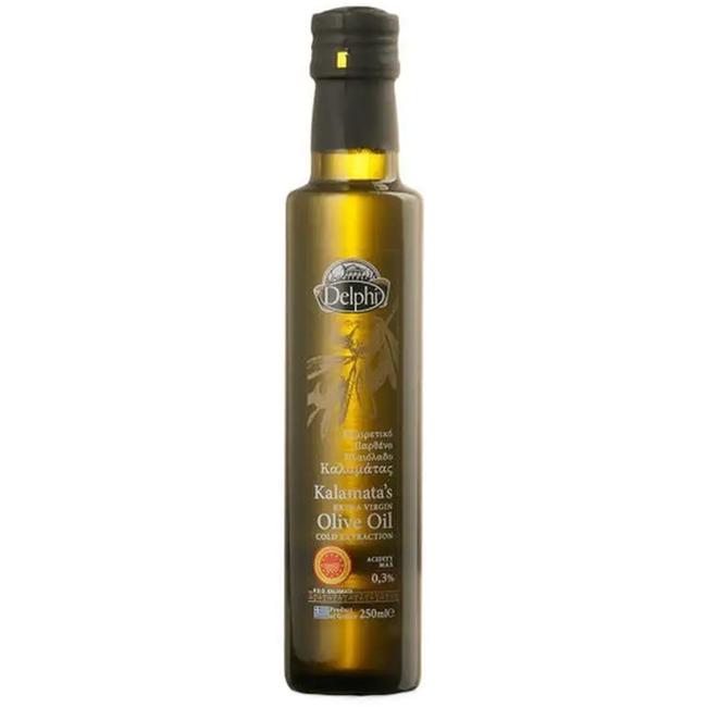Масло оливковое нерафинированное Extra Virgin Каламата Delphi — это премиальное греческое оливковое масло первого холодного отжима из отборных плодов сорта Каламата. Это нерафинированное оливковое масло с кислотностью 0,3% сохраняет максимум питательных веществ, натуральных антиоксидантов и полифенолов, которые поддерживают иммунитет, укрепляют сосуды и замедляют процессы старения клеток.