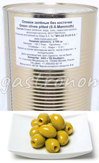 Оливки зелёные без косточки (весовые) Mylos Plus