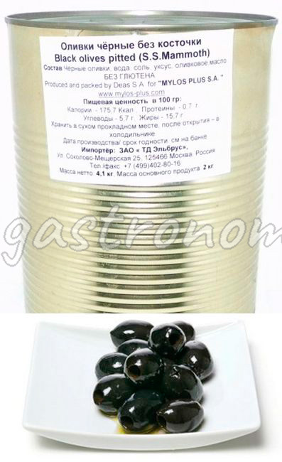 Оливки чёрные (маслины) без косточки (весовые) Mylos Plus