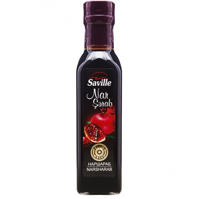 Гранатовый соус Saville - тягучий гранатовый соус обладает приятным, пикантным, гармоничным вкусом. Не содержит консервантов. Используется в качестве приправы к мясным и рыбным блюдам.