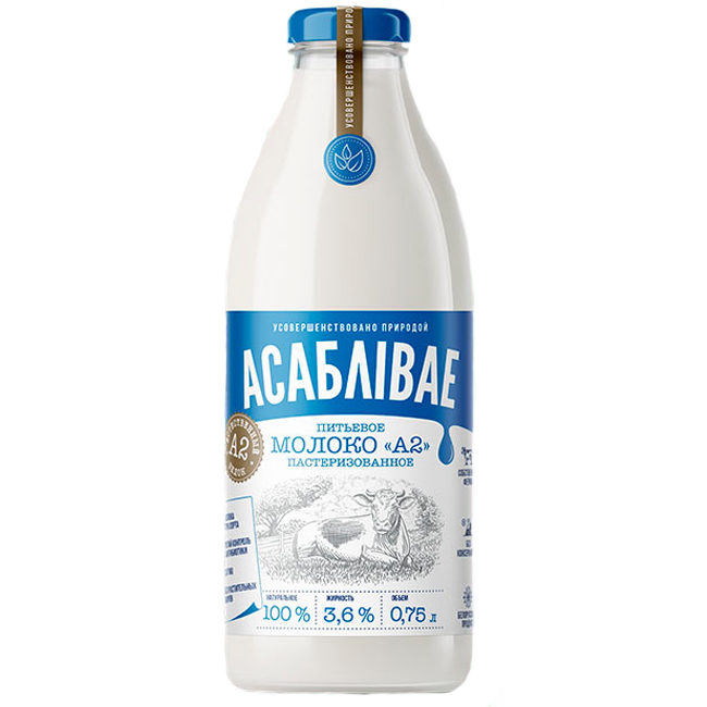 Молоко 3,6% Асаблiвае А2 750 мл пастеризованное