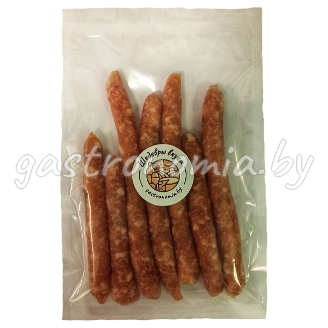 Тонкие, сыровяленые колбаски из филе цыпленка бройлеров