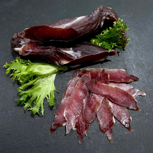 Состав: вырезка свиная, смесь посолочно-нитритная "Универсальная с йодом" (соль пищевая выварочная, консервант и фиксатор окраски-нитрит натрия, агент антислеживающий Е536, йодат калия), комплексная пищевая добавка "Ферментированная ветчина Сицилия" (лактоза, декстроза, вкусоароматический препарат, усилитель вкуса и аромата Е621, дрожжевой экстракт, антиокислитель Е301, Е300, экстракты специ (перец, имбирь, корианд, чили).