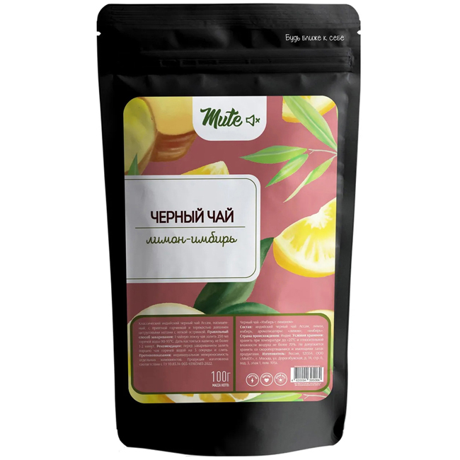 Чёрный чай "Имбирь с лимоном" 100 г Mute