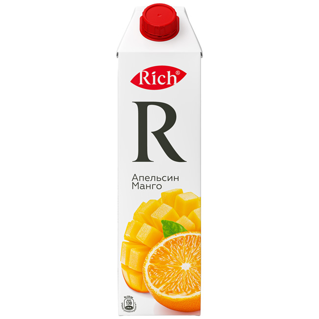 Нектар Rich из апельсинов и манго. Для производства используются только специально отобранные фрукты самого высокого качества. Насыщенный вкус спелого манго, подчеркнутый приятно освежающей кислинкой апельсинового сока. Нежная обволакивающая текстура и легкое цитрусовое послевкусие.