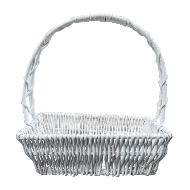 Корзина плетеная из ивовой лозы белого цвета. Может быть использована: для упаковки подарков, цветочных композиций; для хранения и транспортировки различных предметов и продуктов; как декоративный элемент интерьера.