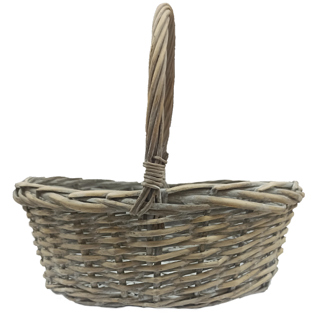 Корзина плетеная из ивовой лозы серого цвета. Может быть использована: для упаковки подарков, цветочных композиций; для хранения и транспортировки различных предметов и продуктов; как декоративный элемент интерьера.