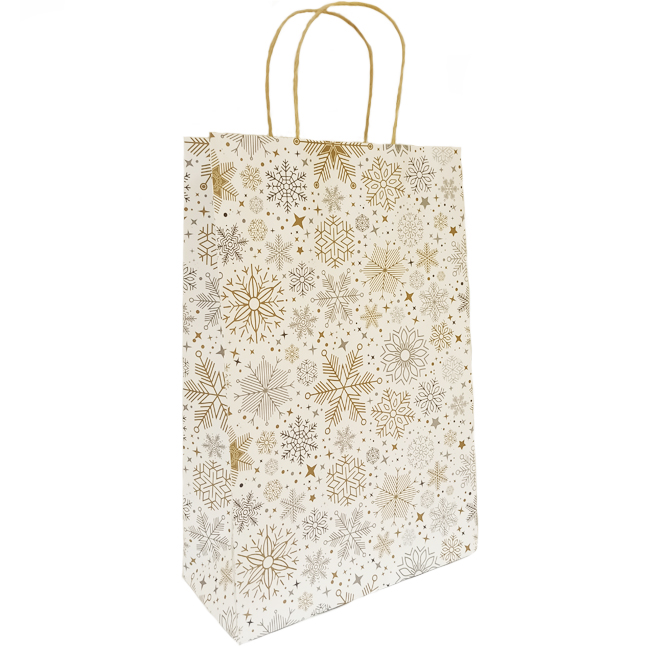 Подарочный пакет "Золотые, серые и серебряные снежинки" 24смх35смх10см