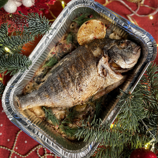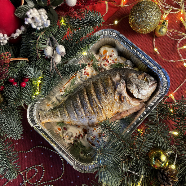 Блюдо рассчитано на 2-4 чел. Тушка маринованной в паприке и прованских травках дорады, на подушке с мятым бейби картофелем, в сливочном соусе на основе сморчков и вешенок - блюдо для настаящих гурманов! Рекомендуемый способ приготовления: ИЗВЛЕЧЬ из пакета для запекания, готовить в духовке 25- 35 минут при 180*С до готовности, перед подачей дать отдохнуть 5-10 минут, для стабилизации соуса.