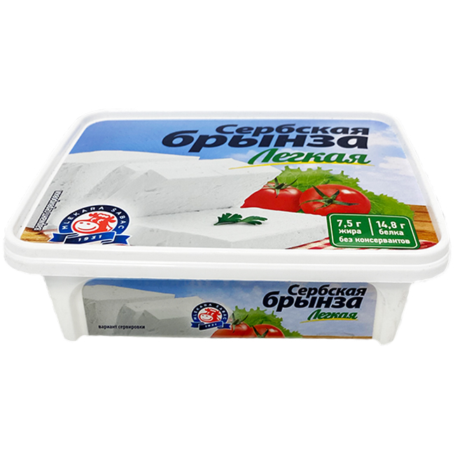 Сербская Брынза легкая 25% отличный выбор для тех, кто хочет насладиться вкусом мягкого рассольного сыра, но так же следит за калориями, так как в Сербской Брынзе легкой пониженное содержание жира. Продукт изготовлен из высококачественного молока с сербских ферм, без добавления консервантов.