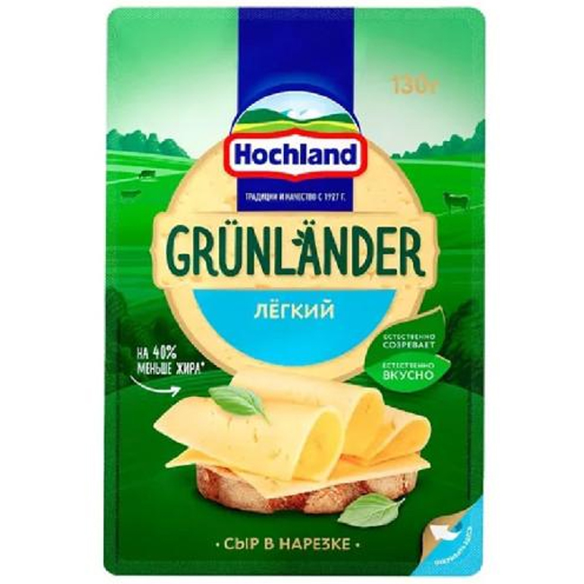 Сыр Грюнландер лёгкий (нарезка) 130 г Hochland