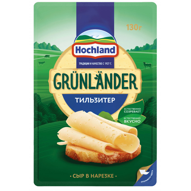 Сыр Grunlander "Тильзитер " - естественно вкусный полутвердый сыр от компании Hochland обладает мягкий молочный вкусом, идеален для завтрака.